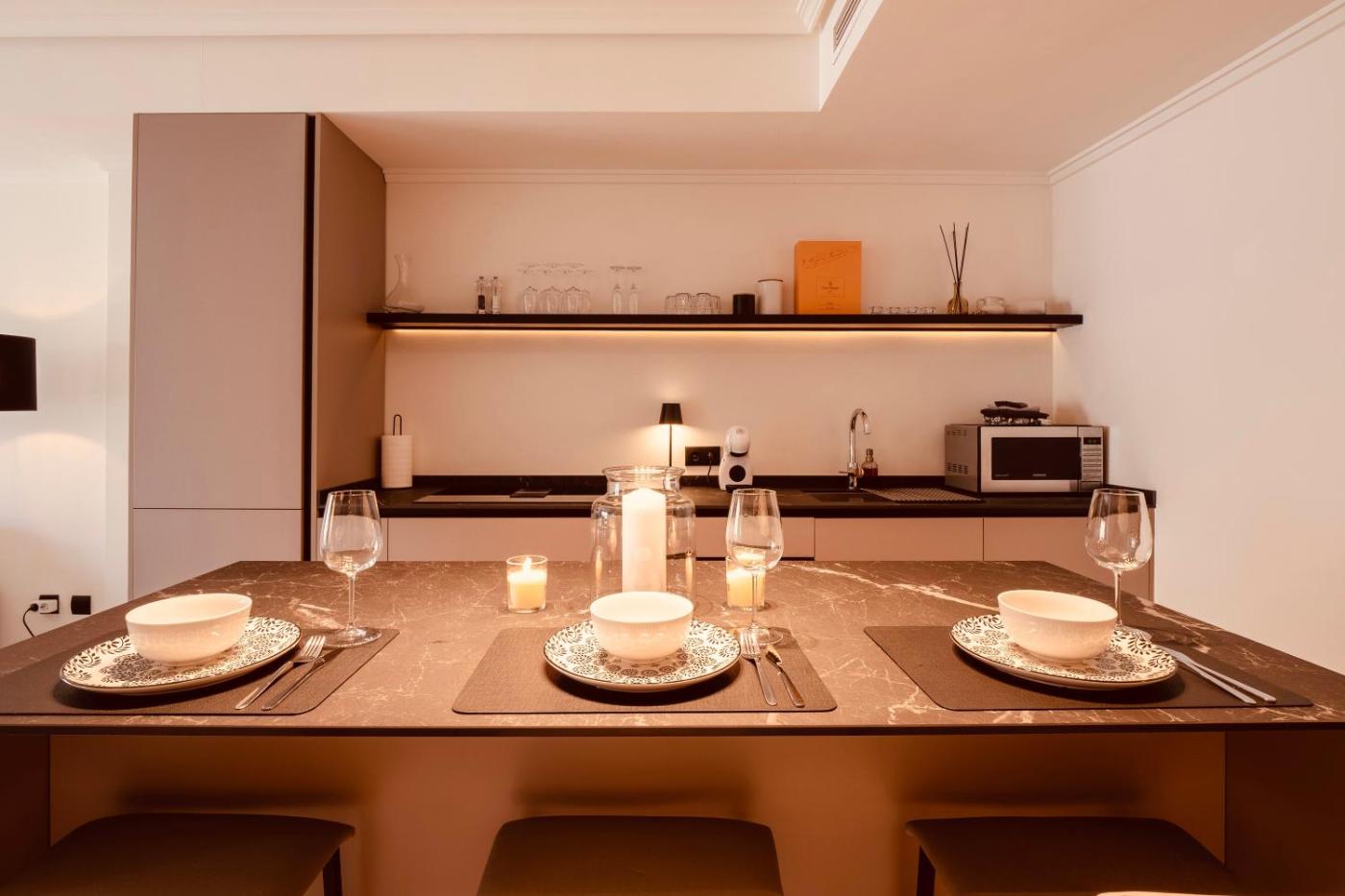 Two-Bedroom Apartment. This spacious apartment comes with 1 living room, 2 separate bedrooms and 2 bathrooms with a walk-in shower and a hairdryer. In the kitchen, guests will find a refrigerator, a dishwasher, kitchenware and an oven. The air-conditioned apartment features a flat-screen TV, a washing machine, a coffee machine, a seating area as well as sea views. The unit has 2 beds.