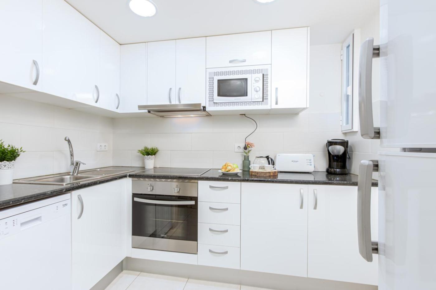 Two-Bedroom Apartment. Meals can be prepared in the kitchen, which features a refrigerator, a dishwasher, kitchenware and an oven. The spacious air-conditioned apartment features a flat-screen TV with satellite channels, a washing machine, a coffee machine, a dining area as well as city views. The unit has 3 beds.